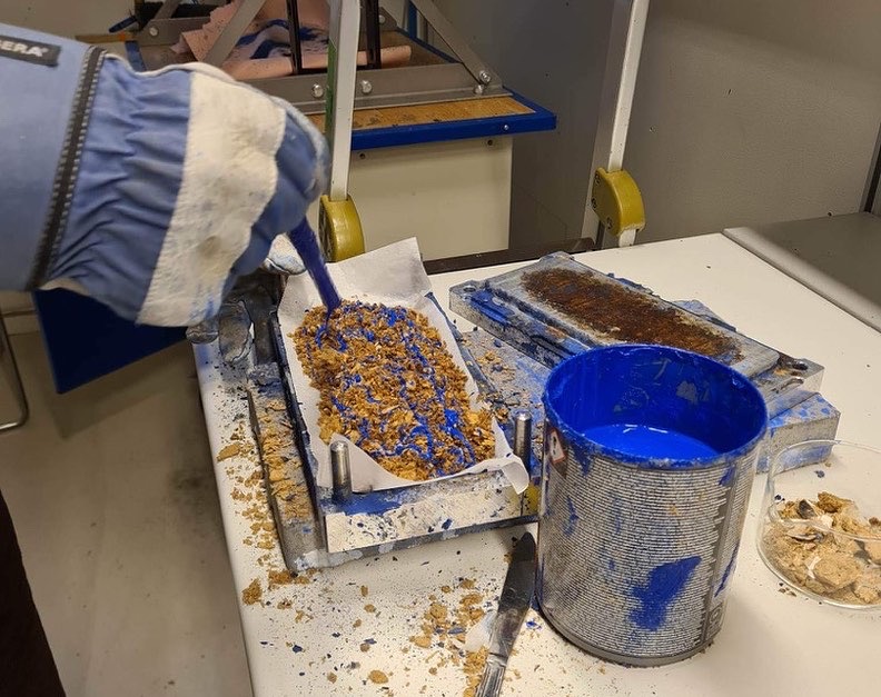 The material is “waste re-made,” referred to as WRM, and is manufactured by hot pressing pellets from Edsbyverkens discarded scraps. The result is a method to save and use materials once more that otherwise would have been lost.